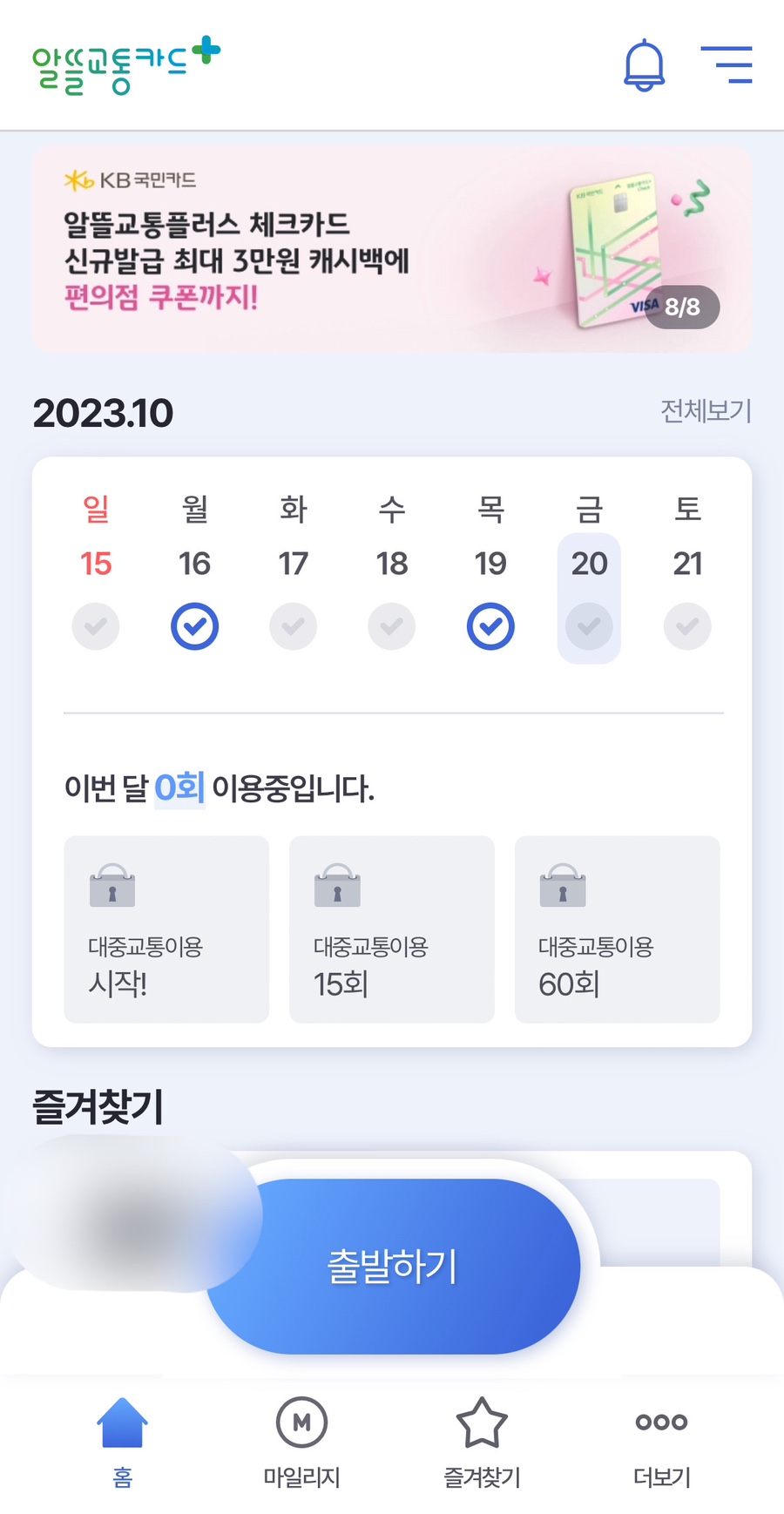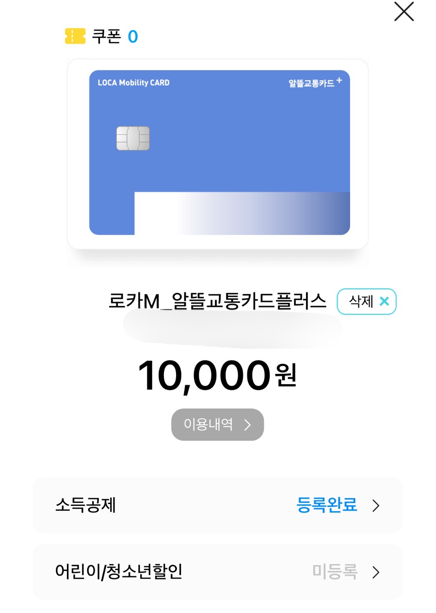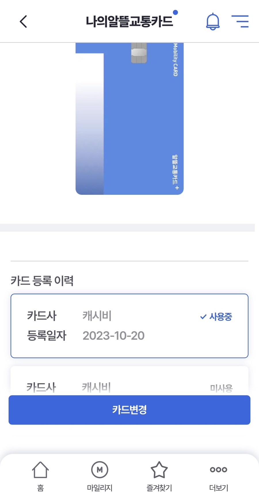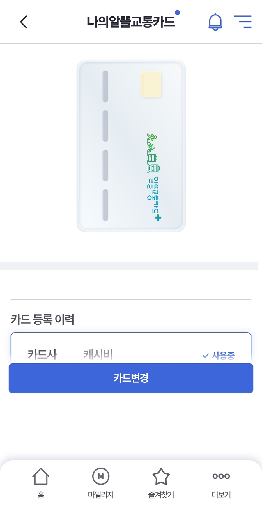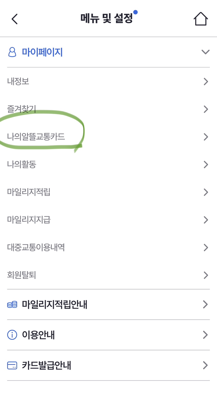 ② 마이페이지에서 '나의 알뜰 교통카드' 선택