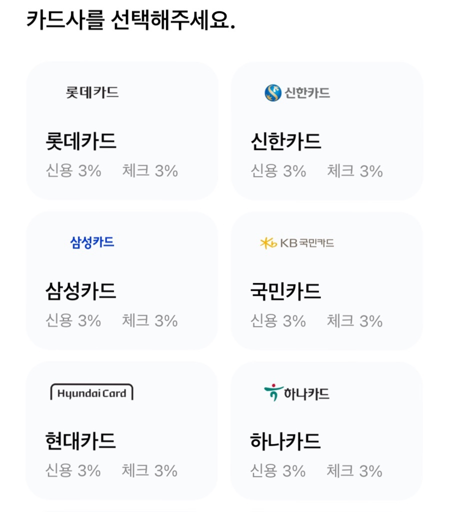 ① 신용ㆍ체크카드/ 계좌이체 중 선택