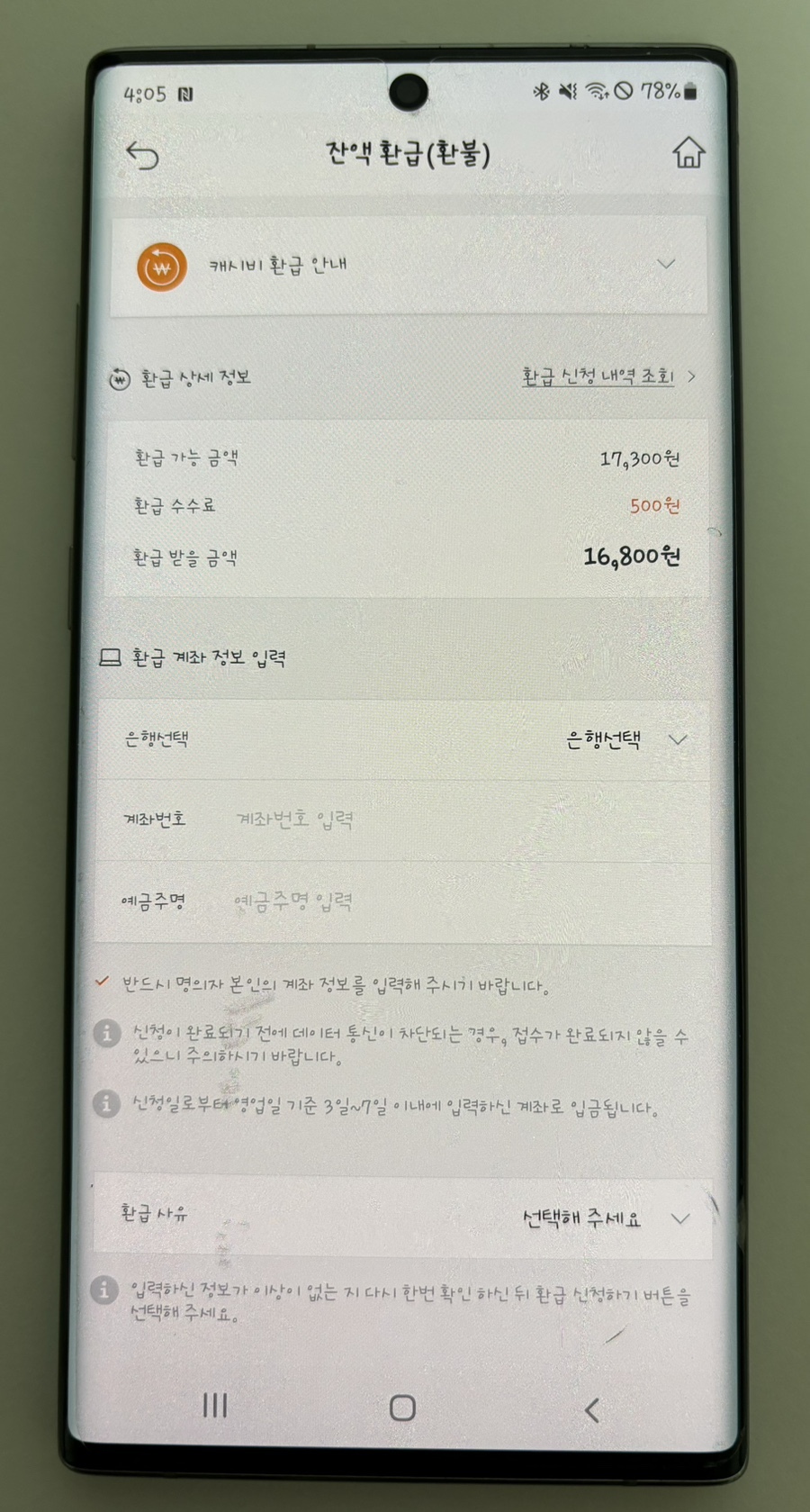 (환급 신청 후 바로 0으로 바뀐 금액ㅋㅋ)
